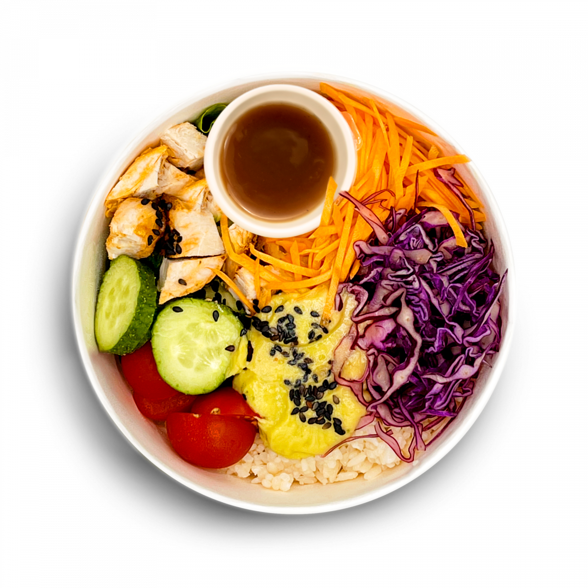 Этот поке – идеальное сочетание насыщенных вкусов и свежих текстур. В основе блюда – воздушный рис нишики, пропитанный ароматным кунжутным маслом и соевым соусом, создающий мягкую и гармоничную базу.